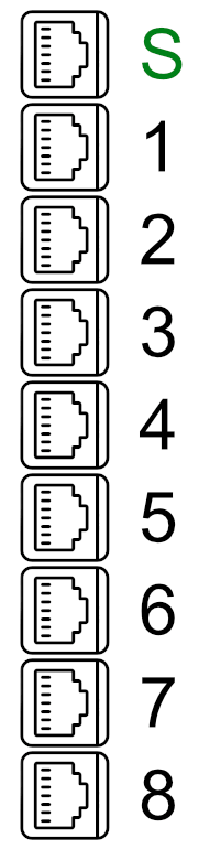 Huoneistojakamossa on Ethernet-nousuportin lisäksi muita numeroituja Ethernet-portteja, joita käyttämällä saa yhteyden kytkettyä eteenpäin huoneiston lattiarajassa sijaitseville, vastaavasti numeroiduille porteille.